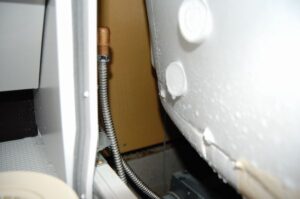 カビの発生源であるエプロン内部を丁寧に施工して行きます。