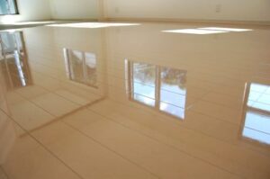 紫外線劣化や経年劣化によるフローリングの変色を抑え、擦り傷なども付きにくいのでフローリングをきれいな状態で保つことができ、コーティング後は水分を寄せ付けないので水拭きなども可能になります。
